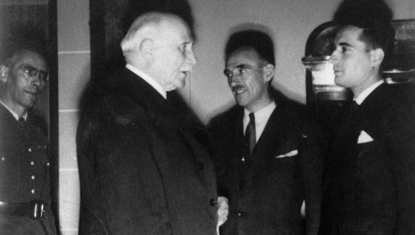François Mitterrand et Marcel Barrois rencontrent le maréchal Pétain à l’Hôtel du Parc, siège du gouvernement de Vichy, 15 octobre 1942 ©Getty – Pierre Péan / Collection Gamma-Rapho