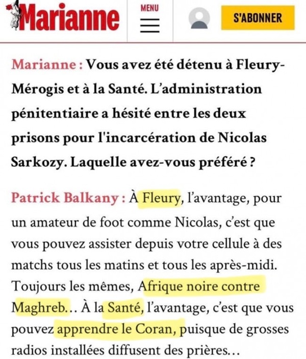Les télés se bousculent, les micros se tendent, Carla est devenue la femme d’un boss, on est dans les Sopranos, ces héros du néolibéralisme, mafieux sympas, humains, qu’on préfère aux austères, aux bosseurs, aux honnêtes... À peine Nico entré chez les rabzas, que Le Figaro annonce une première demande de mise en liberté. Le Monde nous apprend que le taulard « garde la confiance du monde des affaires » (tu m’étonnes), on a même droit à la journée-type du nouvel entrant avec la première nuit, le petit déjeuner. Heureusement, le Balkany, l’homme qui l’a formé, a dû l’affranchir, sans jeu de mots.