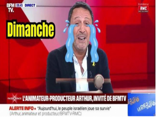 En tant que multimillionnaire (à la tête de 300, 400 ou 500 millions, estimation basse), en tant qu’animateur, en tant que producteur, mais aussi en tant que juif, Arthur est invité partout, même sur le service public. On l’a vu raconter devant la carpette Devillers sur France Inter qu’il souffrait de harcèlement sur les réseaux sociaux, et qu’un garde du corps le suivait en permanence, alors qu’objectivement, personne ne veut attenter à sa vie.