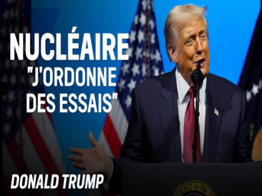 « En raison des programmes d’essais menés par d’autres pays, j’ai demandé au ministère de la Guerre de commencer à tester nos armes nucléaires sur un pied d’égalité. Ce processus commencera immédiatement. Les États-Unis possèdent plus d’armes nucléaires que tout autre pays. La Russie arrive en deuxième position et la Chine loin derrière en troisième, mais elle rattrapera son retard d’ici à cinq ans ». (Source : Truth Social)