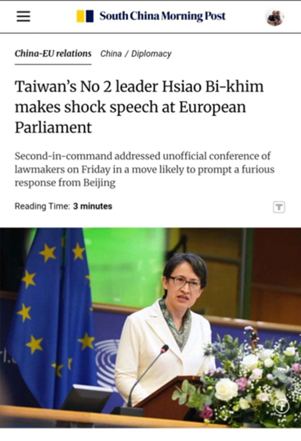 La dirigeante numéro 2 taiwanaise a fait un discours choc au parlement européen. La deuxième dans la hiérarchie s’est adressée à une conférence non officielle de députés européens, une initiative risquant de provoquer une réponse furieuse de la part de Pékin.