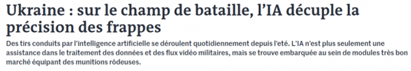 Aujourd’hui, ce sont les drones ukrainiens guidés par IA, qui seraient formidablement efficaces, comprendre en creux que les drones russes tombent n’importe où, ratant souvent leur cible. Pourtant, loin des délires de la presse française, sur le terrain, ce sont les Ukrainiens qui souffrent.