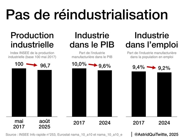Du reste, cette déconfiture n’est pas une spécificité française : selon Euronews, au troisième trimestre 2025, le PIB de la zone euro n’a grimpé que de 0,2% ; on oscille entre l’épaisseur du trait et l’erreur statistique. L’emploi stagne et le chômage tourne autour de 6,3% en attendant sans doute d’augmenter suite aux faillites qui explosent de 4,4%, particulièrement dans l’hôtellerie-restauration (+20,7%), les transports (+18,7%) et les services financiers (+14,1%). Fermetures industrielles en cascade, emplois qui disparaissent : l’Europe entière s’arrête.