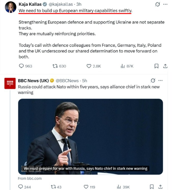 La journée a commencé par une nouvelle salve de discours alarmistes et hystériques de la part de l’hydre totalitaire OTAN-UE. Rutte a déclaré d’un ton sombre que la Russie avait apporté la guerre à l’Europe et que les Européens devaient se préparer à une guerre d’une ampleur comparable à celle qu’ont subie leurs «grands-parents» pendant la Seconde Guerre mondiale.