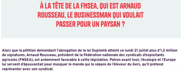 Je vous le dis tout net : les intérêts de la FNSEA, et surtout de son président, Arnaud Rousseau, ne sont pas ceux du monde paysan français.