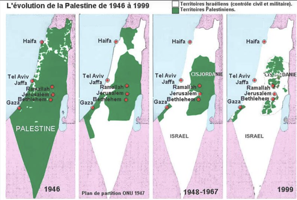En Palestine, le refus des nations arabes d’entériner la décision de l’ONU du 29 novembre 1947, qui donnait la moitié de la Palestine aux Juifs victimes du nazisme allemand, a déclenché une guerre que les nations arabes ont perdue et qui a permis aux Israéliens de procéder à la première étape du nettoyage ethnique de la Palestine.