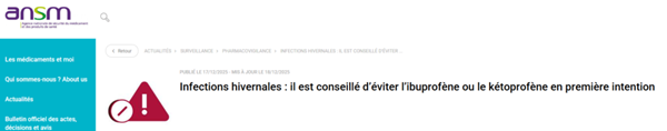 - https://ansm.sante.fr/actualites/infections-hivernales-il-est-conseille-deviter-libuprofene-ou-le-ketoprofene-en-premiere-intention