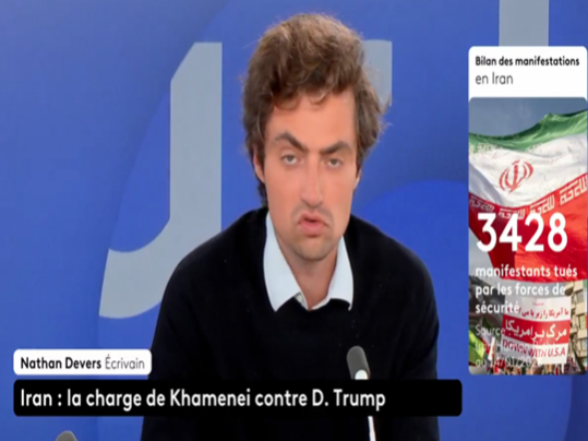 nathan devers est en réalité nathan naccache est dès lors, toutes ses sorties et déclarations pronant l'intervention militaire en Iran prennent un tout autre sens...