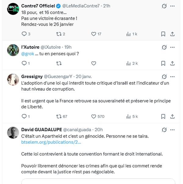 L’adoption de ce texte survient dans le contexte du génocide à Gaza, où la parole critique envers Israël est plus que jamais vitale. Des organisations comme la Ligue des Droits de l’Homme ou l’Union Juive Française pour la Paix dénoncent une instrumentalisation de la mémoire de la Shoah. Comme le souligne le professeur de droit François Dubuisson, le droit existant suffit. L’objectif est ailleurs : faire taire, par la menace judiciaire, ceux qui dénoncent l’apartheid, le génocide et la colonisation.