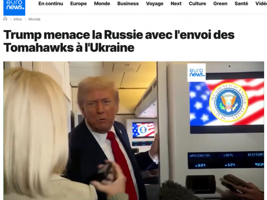 Cela fait quelque temps que Trump semble hésiter, soit à prendre la décision d'envoyer des missiles Tomahawk en Ukraine, soit à reconnaître que cette décision est déjà prise. Précisons, que ces missiles longue portée peuvent porter des têtes nucléaires et qu'ils ne peuvent sans aucun doute être maniés que par des Américains. De plus, suite aux dernières modifications, ils peuvent être lancés depuis des lanceurs terrestres mobiles.