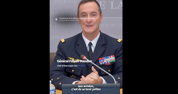 L’armée française doit être «prête à un choc dans trois, quatre ans» face à la Russie, qui «peut être tentée de poursuivre la guerre sur notre continent», a affirmé mercredi le chef d’état-major des armées françaises, Fabien Mandon, pour justifier «l’effort de réarmement». pic.twitter.com/79b5V2Nag8