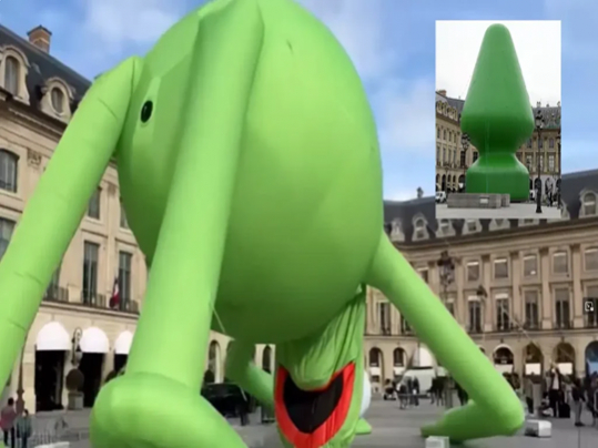 Da Corte🇺🇸installe Place Vendôme une structure gonflable qu'il décrit comme une "grenouille"