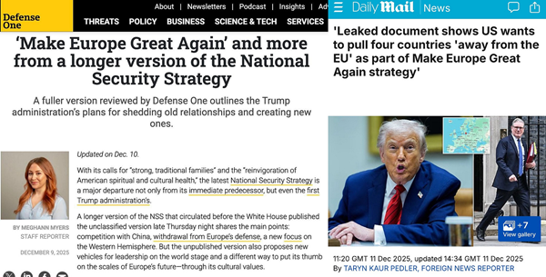 Zelensky envisagerait désormais d’organiser un référendum sur la cession du Donbass afin d’apaiser Trump et son nouveau «plan de paix». Le problème est que la question du Donbass ne représente qu’un aspect mineur des désaccords plus larges liés aux exigences de la Russie. Il pourrait toutefois s’agir d’une manœuvre pour contraindre la Russie à un cessez-le-feu, puis sceller la guerre avec l’intervention de l’OTAN, étant donné que Poutine a déclaré qu’il mettrait fin aux hostilités si l’Ukraine se retirait des territoires restants du Donbass. Certains se souviendront peut-être que j’avais qualifié cette initiative de coup de maître de Poutine, mais Zelensky, aux abois, pourrait être tenté de le prendre au mot en organisant un référendum.