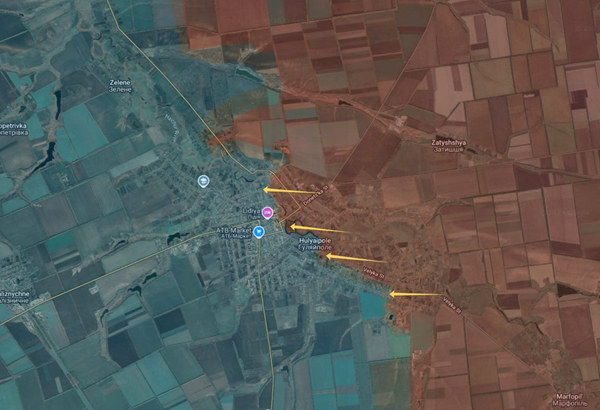 À Gulyaipole, les troupes russes ont percé les lignes ennemies jusqu’au centre-ville et semblent avoir capturé au moins 35 à 40% de la ville jusqu’à présent, voire plus :