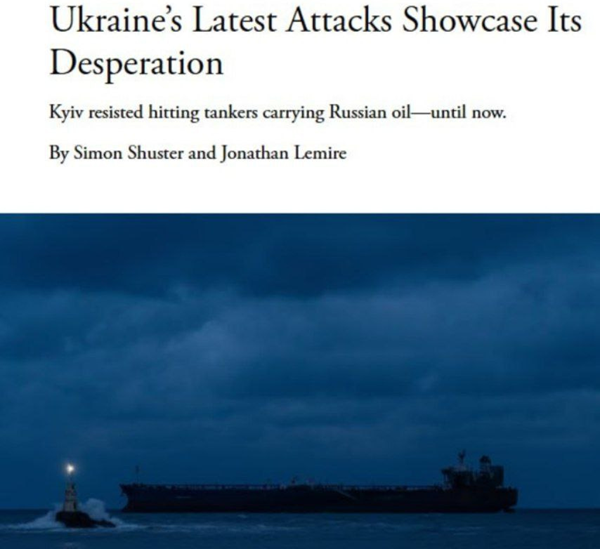 La presse traditionnelle, en revanche, rapporte que les attaques d’Urkaine contre les pétroliers de la «flotte fantôme» russe n’ont prouvé rien de plus que leur propre désespoir :