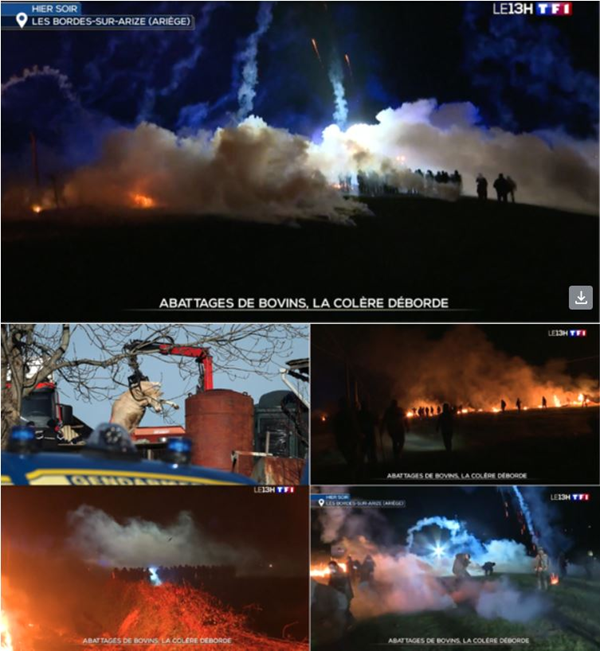 Les «perturbateurs» (!!!) en question sont, évidemment, des agriculteurs venus défendre l’un des leurs contre cette démonstration inouïe de violence et de barbarie, et que l’on a exposé aux gaz lacrymogènes.