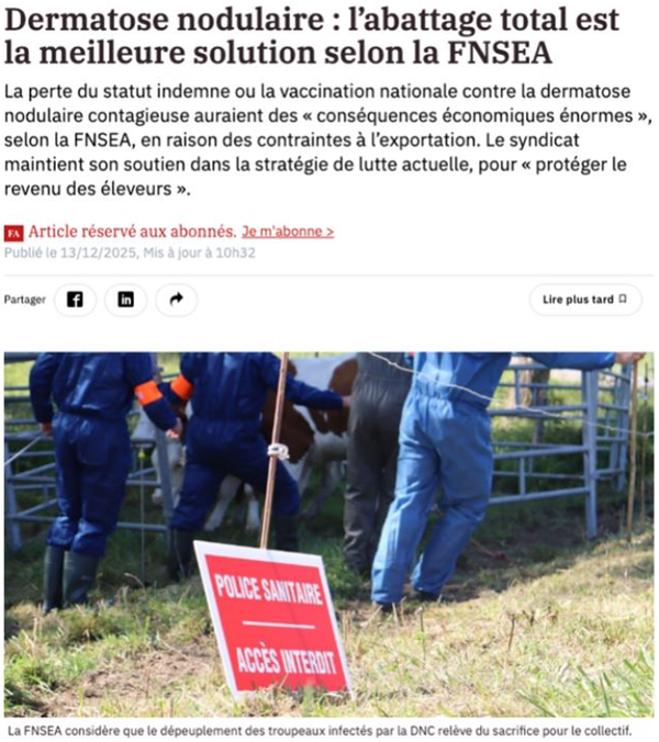 - Ces abattages massifs sont un «épouvantail» pour faire passer la pilule de la vaccination de plus d’un million de bovins :