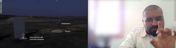 Image tirée du témoignage de Munther Abed décrivant l’emplacement de la fosse et la zone derrière la haute structure en béton où il a été emmené lorsqu’il a été arrêté par les soldats israéliens. (Forensic Architecture, 2026).