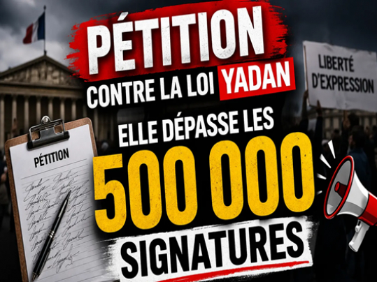 La mobilisation franchit un cap décisif. La pétition contre la loi Yadan dépasse les 500 000 signatures, un seuil clé qui pourrait contraindre l’Assemblée nationale à organiser un débat public.