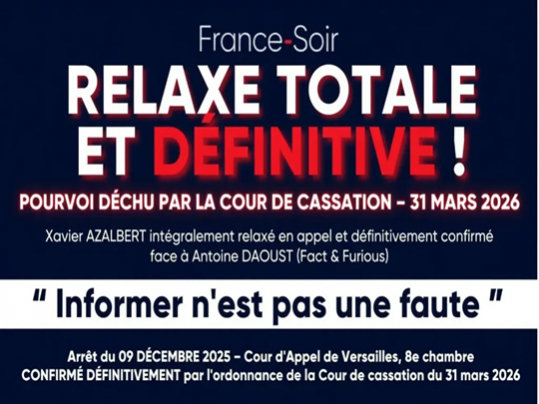 La Cour de cassation a scellé, le 16 avril 2026, la relaxe définitive de Xavier Azalbert, directeur de la publication de France Soir, dans l’affaire en diffamation qui l’opposait à Antoine Daoust. Un épilogue judiciaire qui consacre la liberté de la presse… et l’échec cuisant d’un fact-checker trop pressé.