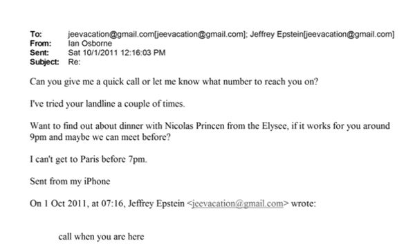 Le 1er octobre 2011, Jeffrey Epstein reçoit un courriel de Ian Osborne, milliardaire britannique, aujourd’hui administrateur d’Havas :